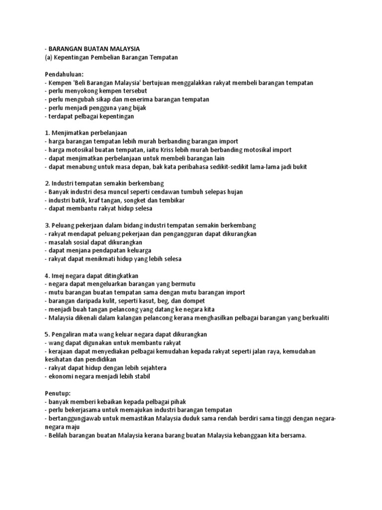 Contoh Esei Tugasan 2 Belilah Barangan Buatan Malaysia Pdf