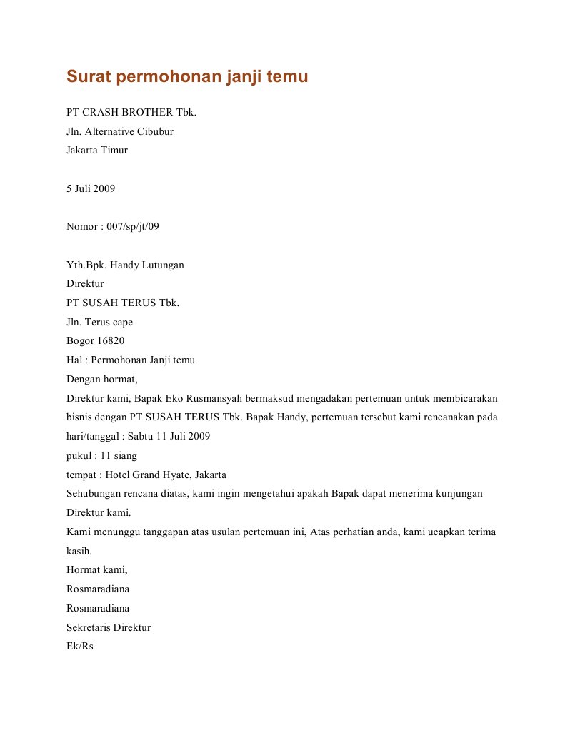Contoh Surat Janji Temu Dalam Bahasa Indonesia